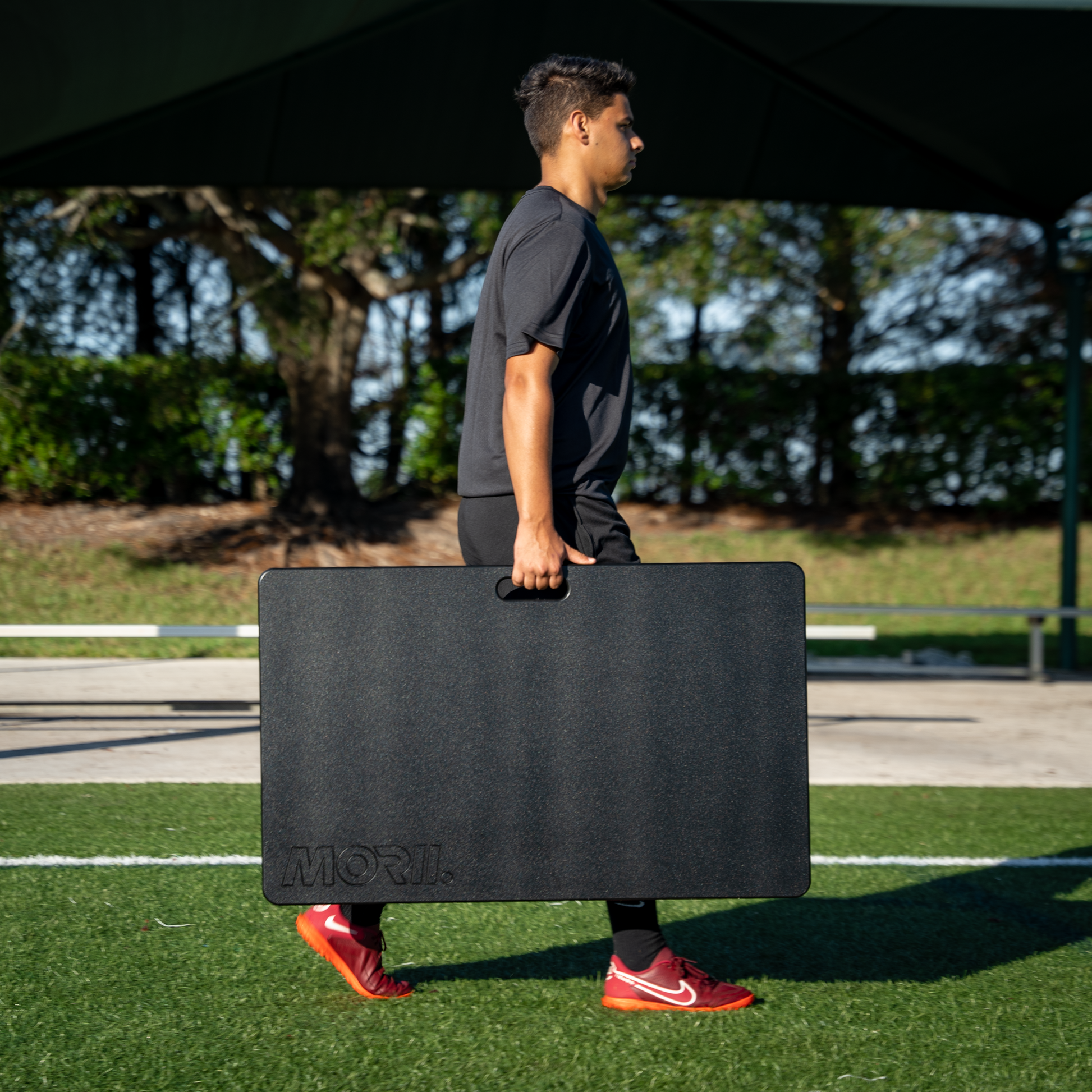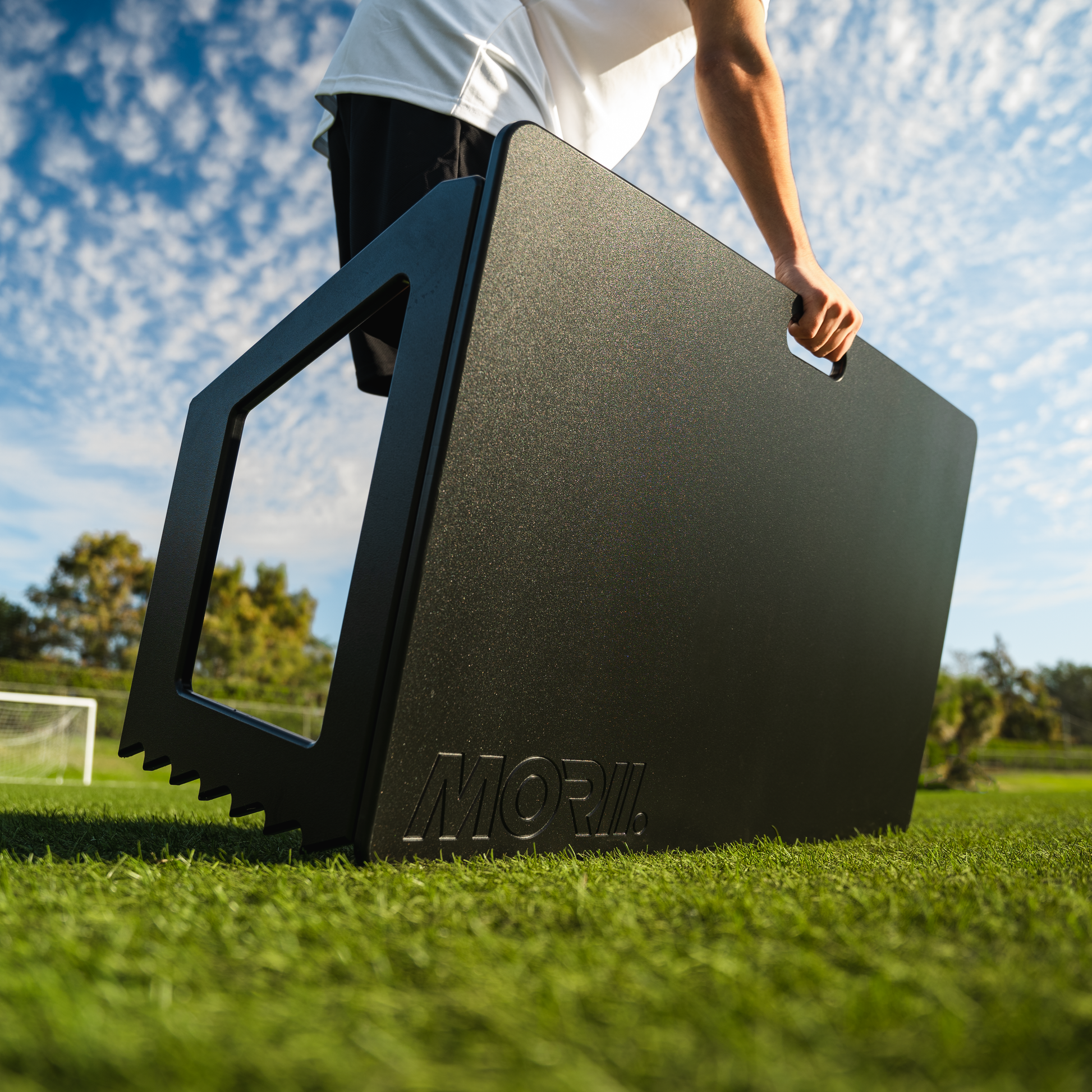The MORII Soccer Rebounder Board comes in multiple sizes and can be set at multiple angles to create a variety of soccer drills and practice scenarios. The assortment of pass back drills that can be simulated with the various angles improve reaction time, timing, agility, and athleticism.